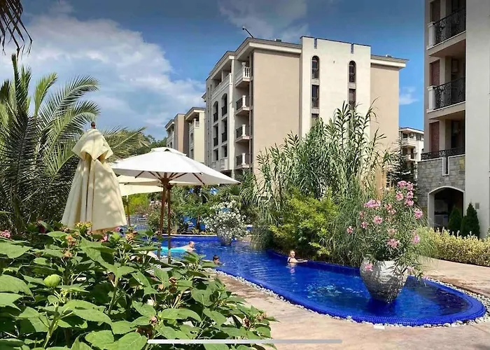 ディネヴィ・マリーナはアパートから自動車で10分以内です。 プライベートのビーチがすぐ近くにあります。 Deluxe Appartement In Cascadas Resort Sunny Beachは古代都市ネセバルから6kmの距離の場所にあります。